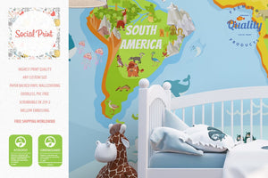 Nursery Wallpaper Fun Educational World Map, Kids Room Wallpaper