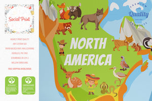 WORLD MAP WITH ANIMALS WALLPAPER - NURSERY WALLPAPER - NON-WOVEN WALL COVERINGS