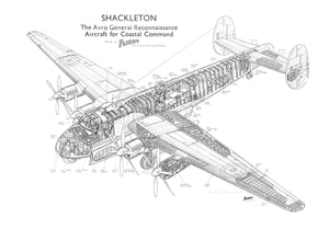 The Shackleton Drawing originally from Flight Magazine is a detailed technical illustration of the Avro Shackleton, a long-range maritime patrol aircraft used by the Royal Air Force.