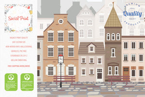 Beautiful houses and hot air balloons is the best wallpaper for kids room. Decorate the walls of your nursery with this fantasy dollhouse city for creative thinking and imagination of child development.